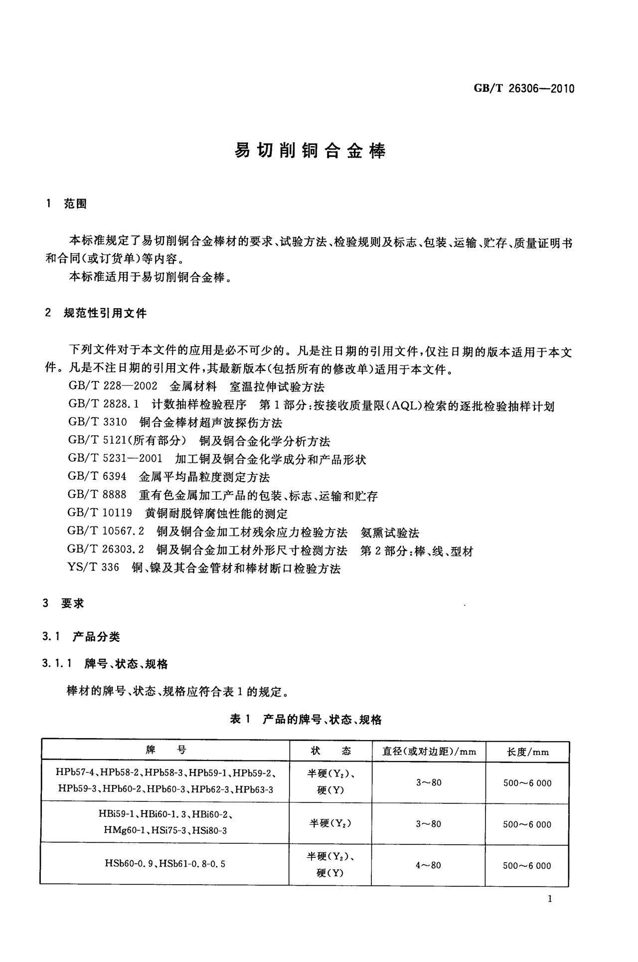 GB/T 26306-2010易切削銅合金棒